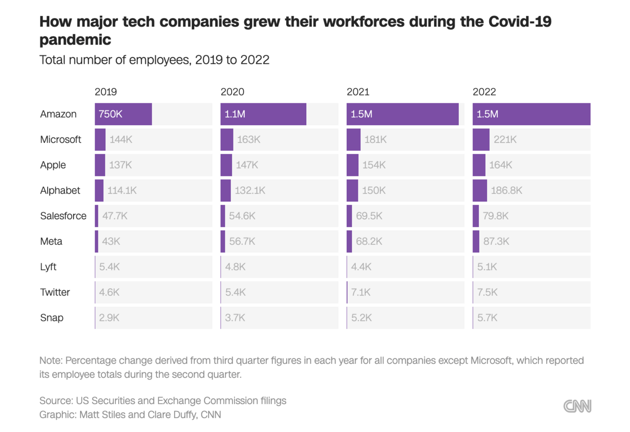 But, so far in 2023, they’ve announced two rounds of layoffs (in January and March) for 21,000 layoffs.