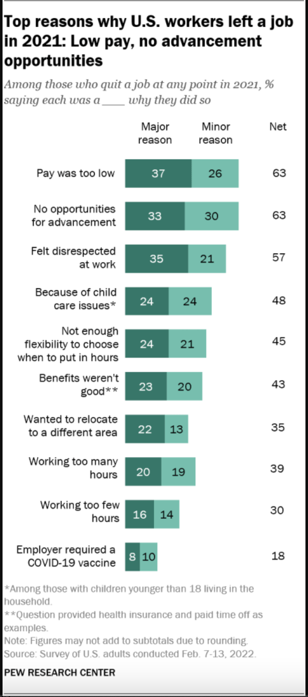 - During the pandemic, the government gave people money (stimulus cheques, CERB, etc). Simply put, it’s easy to quit if some money will come from elsewhere (in most cases).