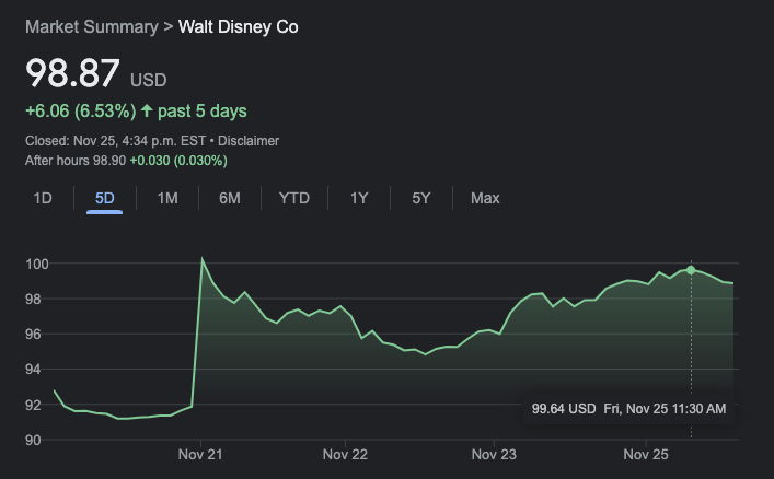 Good news is that you can clearly see the Disney stock price shoot up by 10% as soon as Iger’s return was announced.
