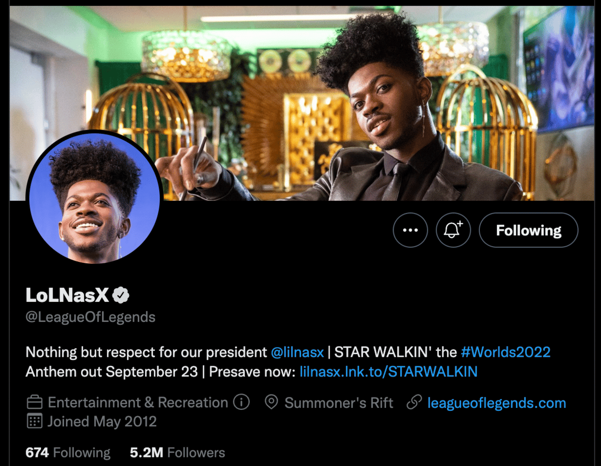 Lil Nas X was named “President” of League of Legends in promotion of the 2022 World Championships.